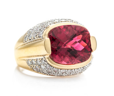An 18 Karat Yellow Gold, Pink Tourmaline and Diamond Ring,