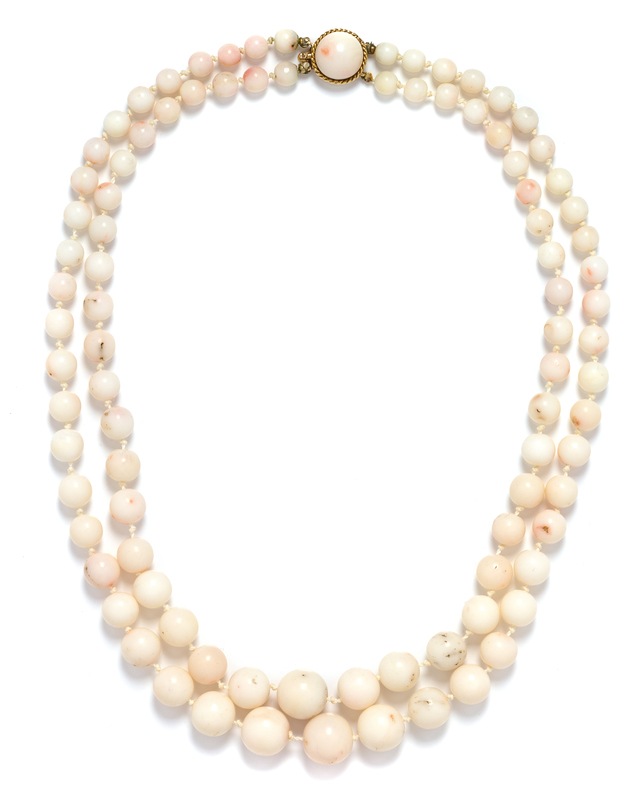 A Graduate Double Strand Angel Skin Coral Bead Necklace,