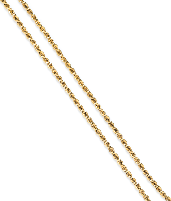 An 18 Karat Yellow Gold Longchain Rope Necklace,