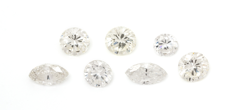consisting of one round brilliant cut diamond weighing approximately 0.38 carat, one round brilliant cut diamond weighing approximately 0.37 carat, two round brilliant cut diamonds weighing approximately 0.35 carat each, one marquise cut diamond weighing approximately 0.34, one marquise cut diamond weighing approximately 0.31 carat, and one round brilliant cut diamond weighing approximately 0.27 carat.