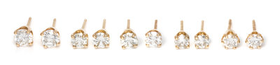 A Collection of Yellow Gold and Diamond Stud Earrings,
