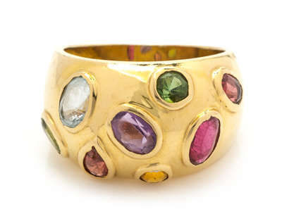 A 14 Karat Yellow Gold Dome Ring with Multi Colored Gemstones,