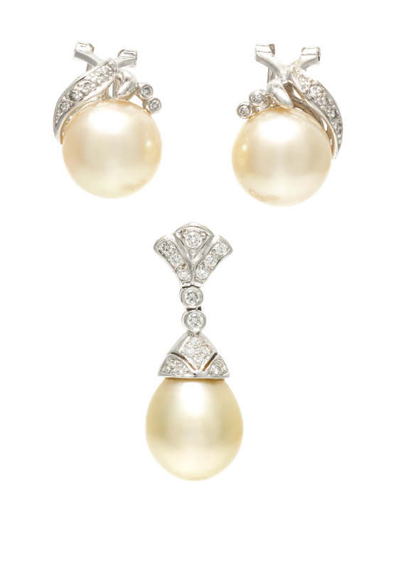 A Collection of White Gold, Cultured Golden South Sea Pearl and Diamond Jewelry,