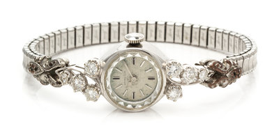 A 14 Karat White Gold and Diamond Wristwatch, Hamilton,