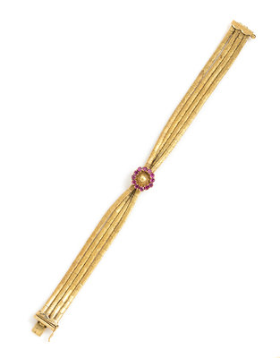 An 18 Karat Yellow Gold and Ruby Bracelet,