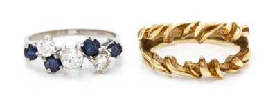 A White Gold, Yellow Gold, Diamond and Sapphire Ring Set,