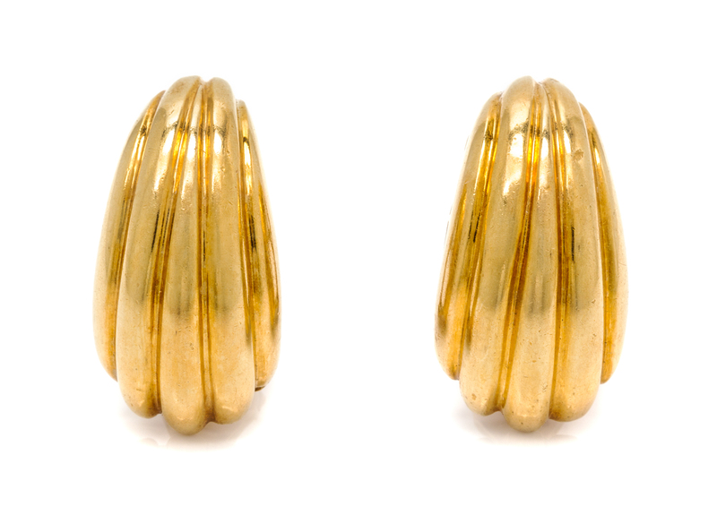 in a fluted ribbed design. Stamp: Kt18 (maker's mark).