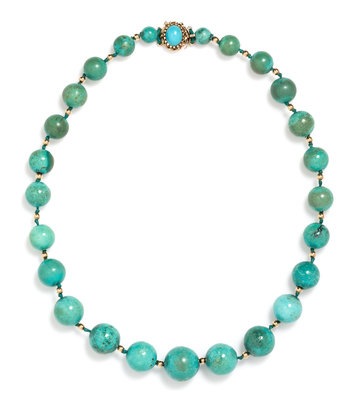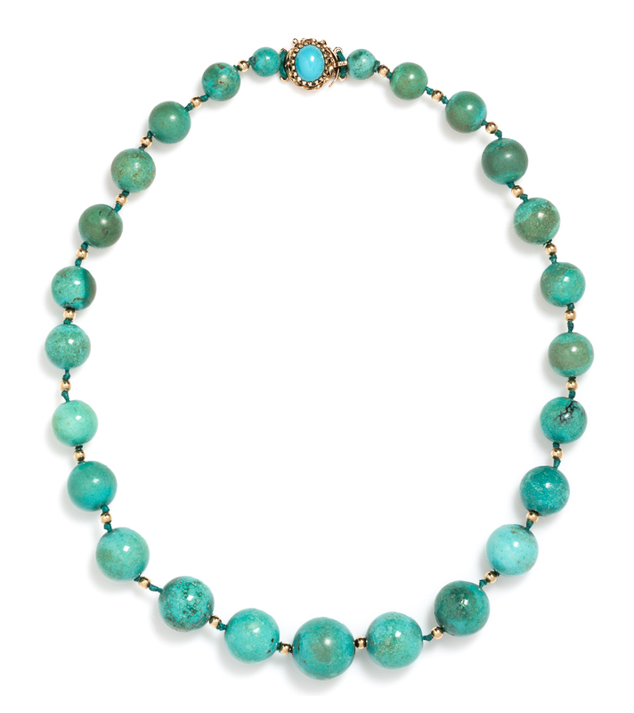 A 14 Karat Gold and Turquoise Bead Necklace,