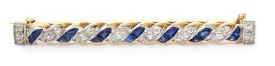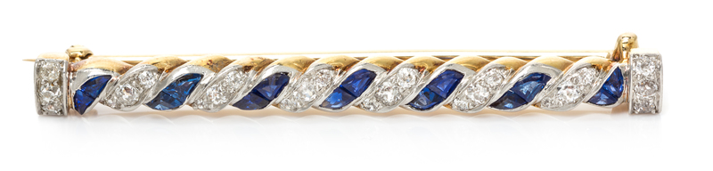 An Edwardian Platinum Topped Gold, Sapphire and Diamond Bar Brooch,