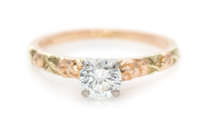 A 14 Rose Gold and Diamond Solitaire Ring,