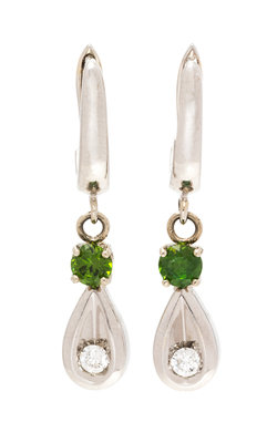 A Pair of 14 Karat White Gold, Demantoid Garnet and Diamond Earrings,