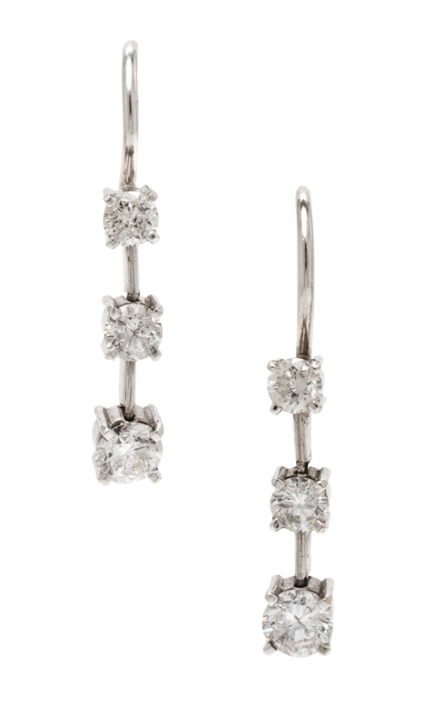 A Pair of White Gold and Diamond Earrings,