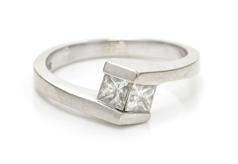 containing two princess cut diamonds weighing approximately 0.40 carat total. Stamp: HL 14K.