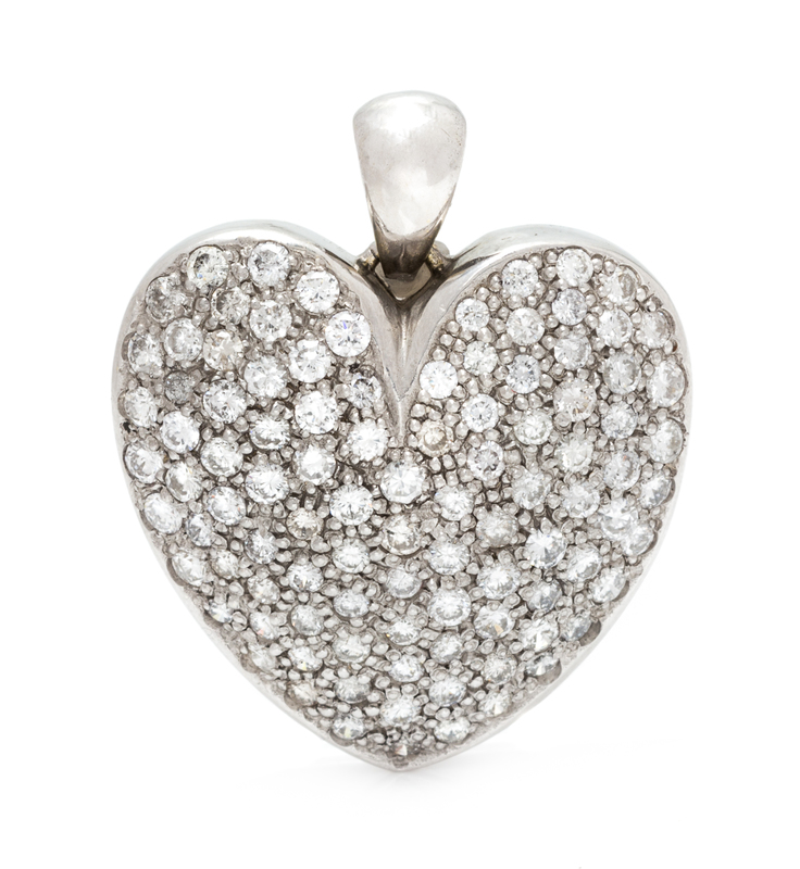 A 14 Karat White Gold and Diamond Heart Motif Pendant,