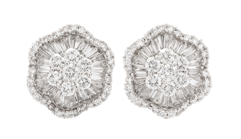 containing 74 round brilliant cut diamonds weighing approximately 2.30 carats total, and 58 baguette cut diamonds weighing approximately 1.11 carats total.Stamp: 750 (RT).