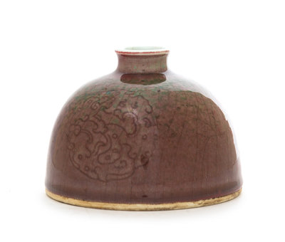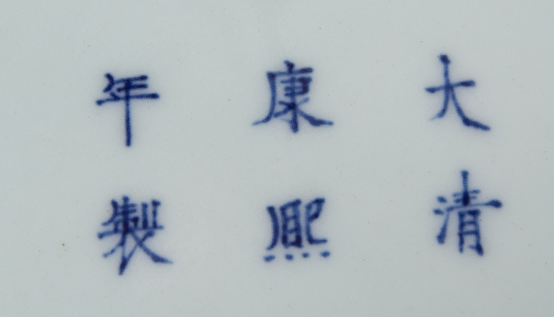 of beehive form with incised dragon decoration, the underside bearing a six-character Kangxi mark in underglaze blue.