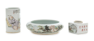 Three Polychrome Enameled Porcelain Scholar's Articles