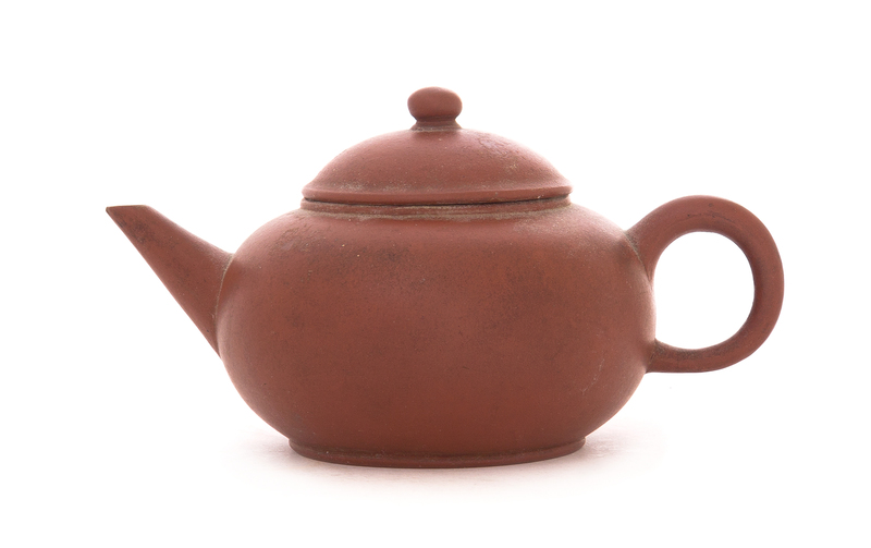 the body of compressed ovoid form applied with a loop handle, the domed cover surmounted by a small knob finial, the underside with a small rectangular panel enclosing a sinuous dragon above waves.