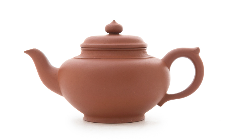 of squat robust form with steep sides, the cover topped with a finial of bud-form, the reverse of the cover marked with two stamped marks, the underside of the body stamped with a four-character Yang Xiaoquan zhi maker's mark.