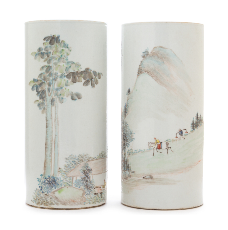 A Pair of Qianjiang Enameled Porcelain Hat Stands