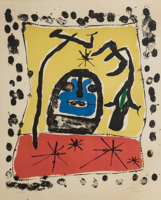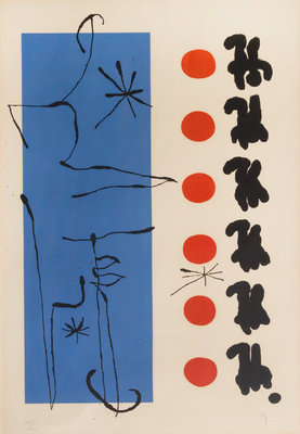Red and Blue and Exhibition Poster at Galerie Matarasso