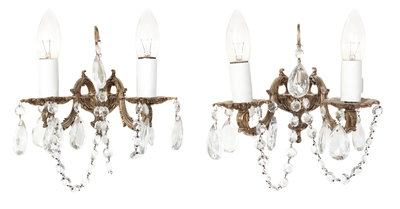 A Pair of Gilt Metal Two-Light Sconces