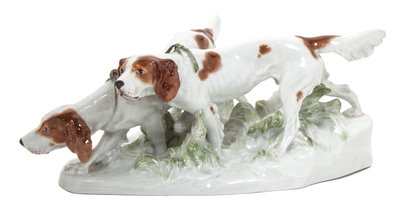depicting two hunting dogs.