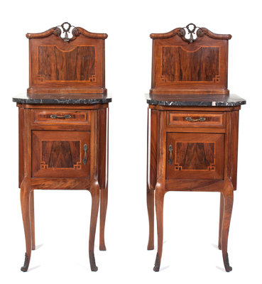 A Pair of Transitional Style Parquetry Bedside Tables