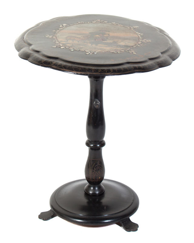 An Ebonized and Parcel Gilt Hand Painted Tilt-Top Table
