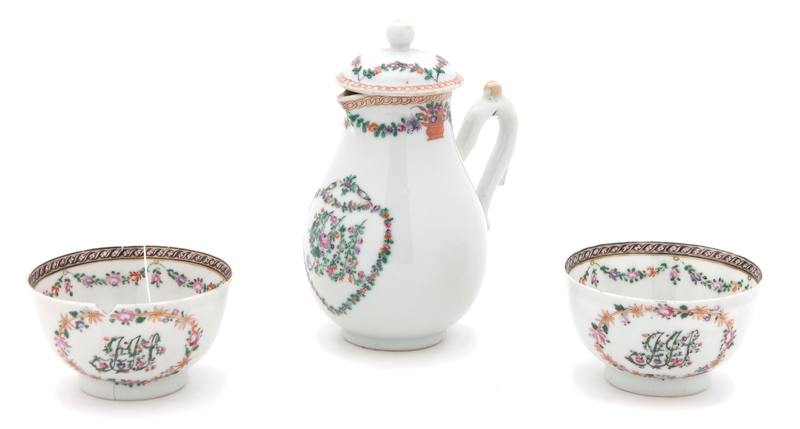 A Chinese Export Porcelain Chocolate Pot