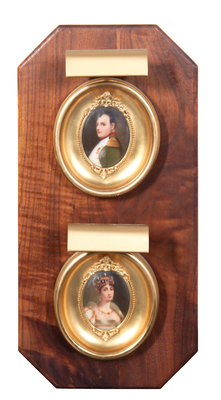 depicting Napoleon and Josephine, mounted to a wood plaque.