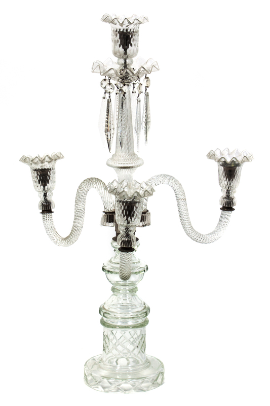 A Victorian Glass Four-Light Candelabrum