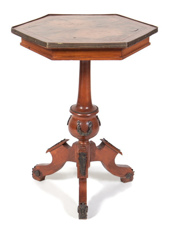 A Biedermeier Style Gilt Metal Mounted Burl Walnut Center Table