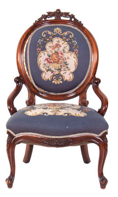 having a needlepoint back and seat.