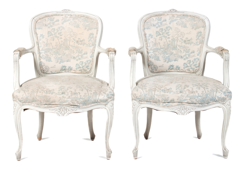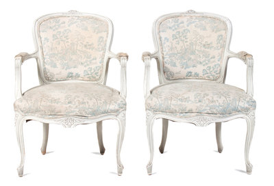 A Pair of Louis XV Style White-Painted Fauteuils