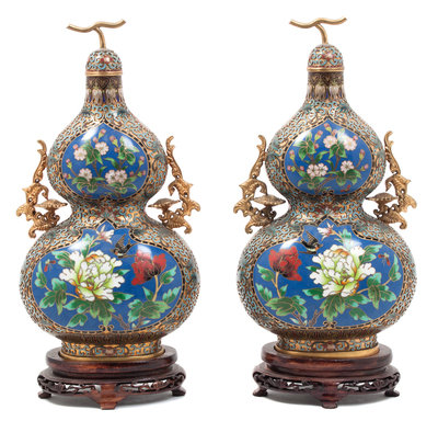 A Pair of Chinese Cloisonne Bottles and Covers