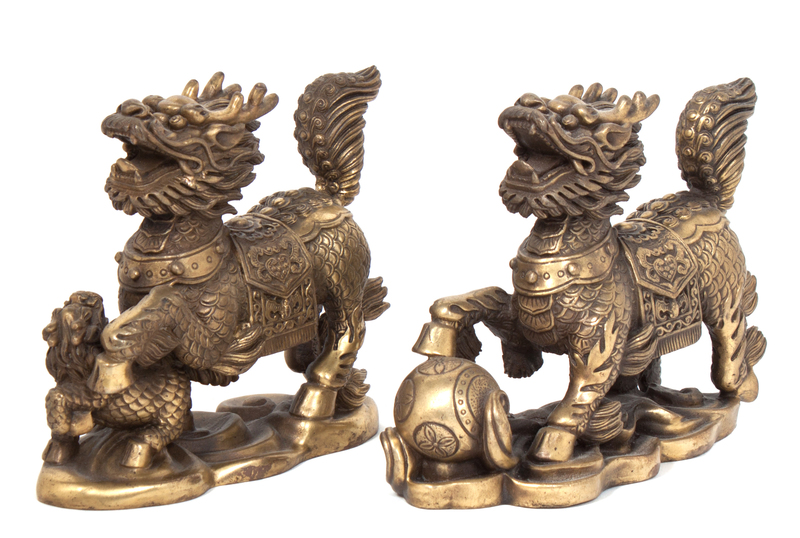 A Pair of Gilt Bronze Temple Guardians