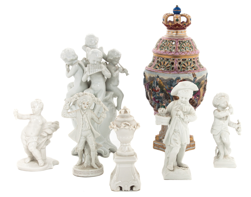 comprising various figures and a potpourri vase.