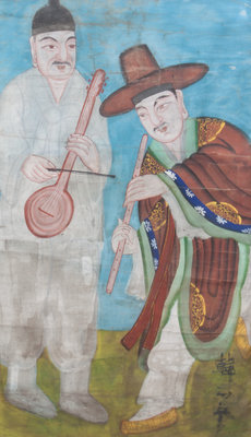depicting two musicians.