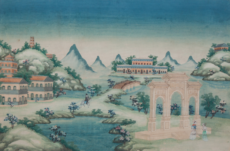 depicting figures in a landscape.