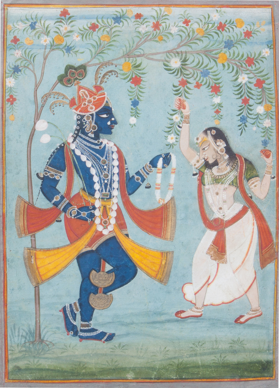 depicting a dancing Bodhisattva and a lady, framed.