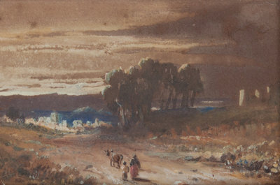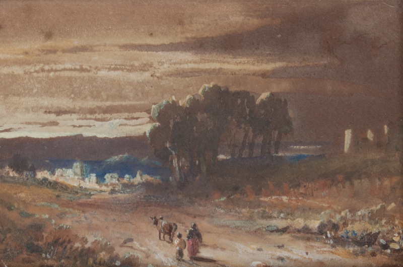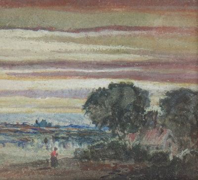 Two Figures and Cow on Road and Figure to Left in Red Blouse (two works)
