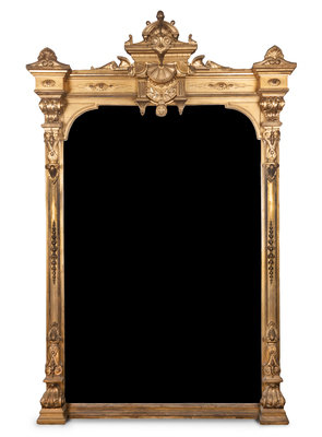 with rectangular plate surmounted with palmette and acanthus carved crest.