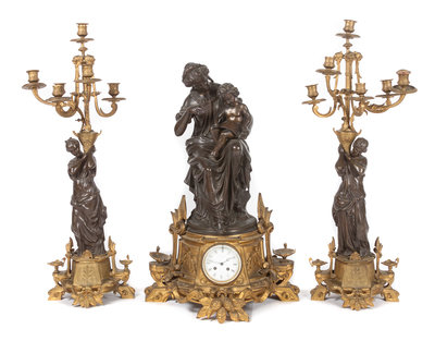 A French Three-Piece Figural Clock Garniture