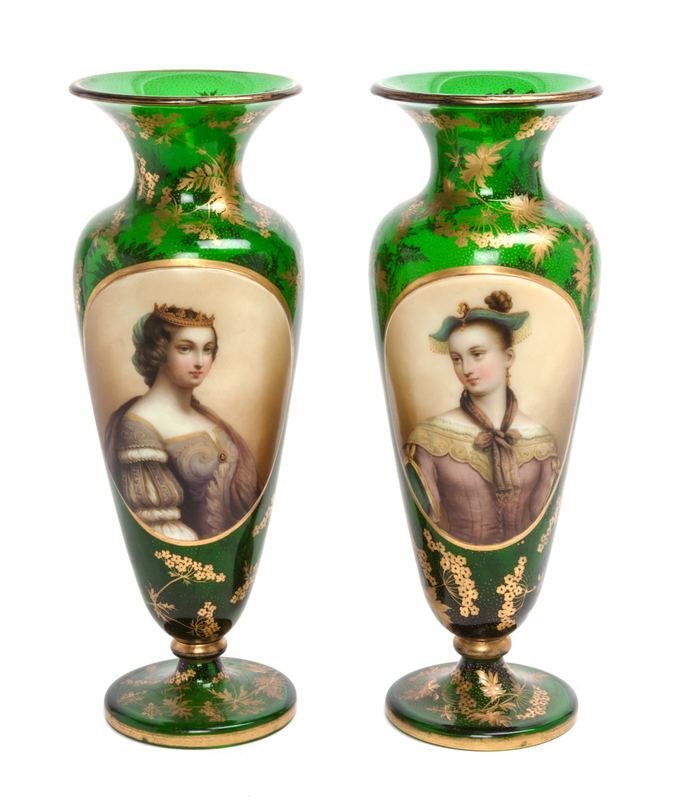 A Pair of Bohemian Gilt Decorated Portrait Vases