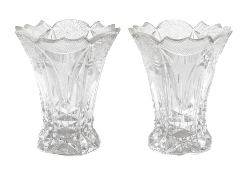 of various size and color, together with two cut glass trumpet vases, 4 items total.