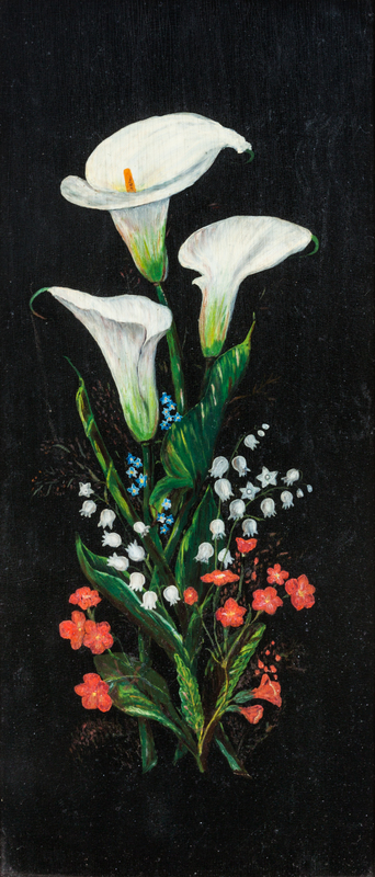 each of rectangular form and depicting a flower, set in matching aesthetic frames.