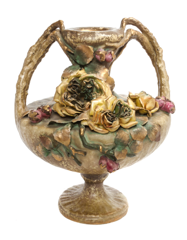 of baluster handled form with applied floral decoration.