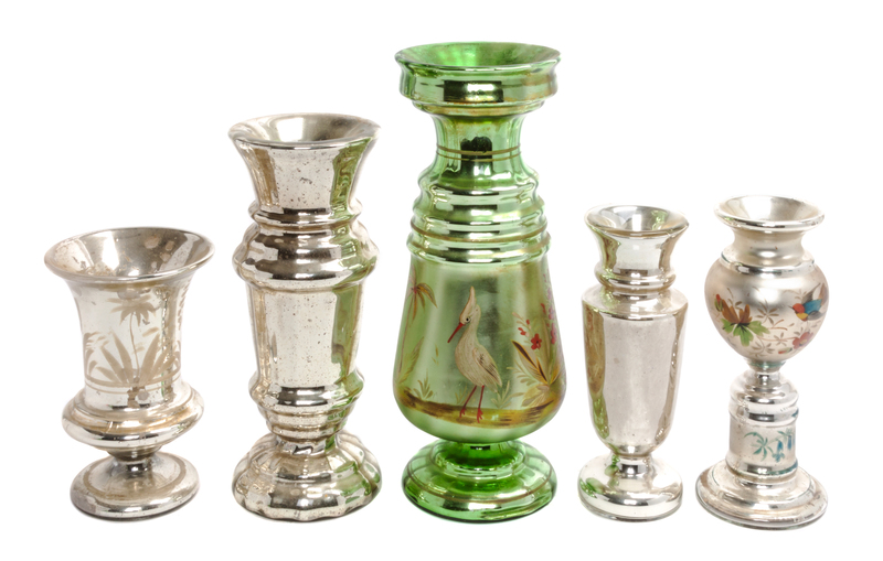 A Collection of Five Mercury Glass Vases