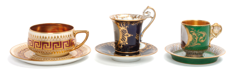 Three Continental Cabinet Cup and Saucer Sets